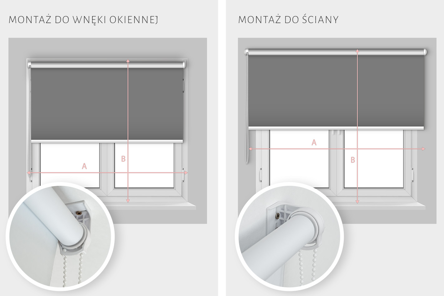 Ważne! Wymiar rolety (szerokość) to rozmiar materiału. Należy do niego doliczyć 5cm na system montażowy.