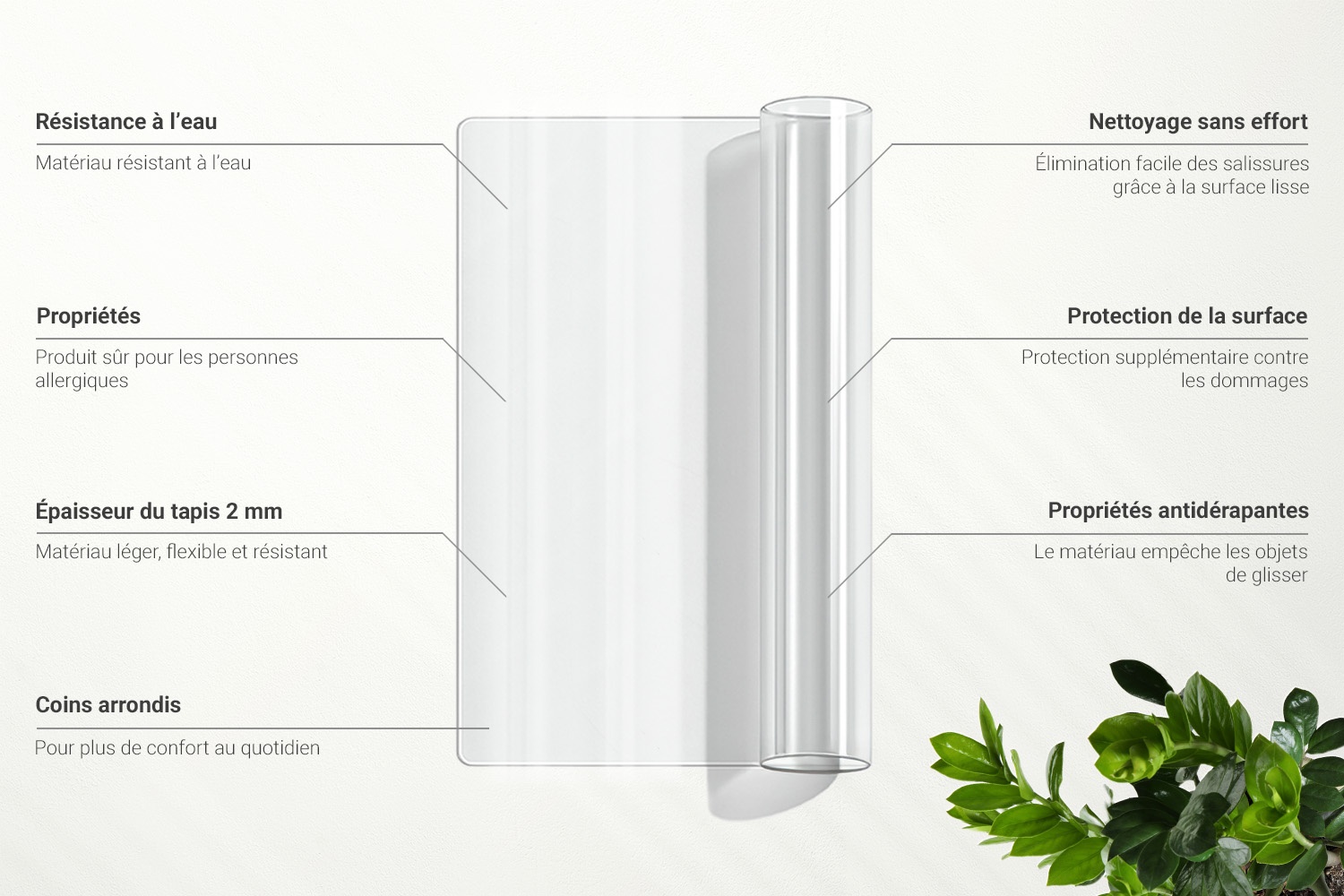 Un tapis de table transparent améliore le confort au quotidien grâce à sa surface parfaitement lisse, idéale pour écrire, utiliser un clavier ou une souris. Sa finition antidérapante garantit qu’il reste bien en place, même lors d’une utilisation intensive.